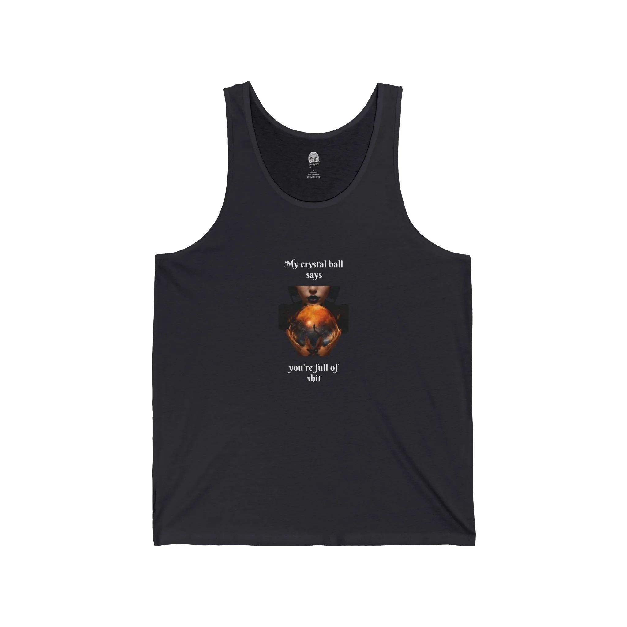 Serve sass and psychic sarcasm in the Crystal Ball, Full of Shit Women’s Flowy Racerback Tank Top — the ultimate blend of mystical vibes and unapologetic attitude. Featuring a bold crystal ball graphic paired with the cheeky phrase “My Crystalball Says You're Full of Shit,” this tank top is made for women who like their intuition with a side of humor.