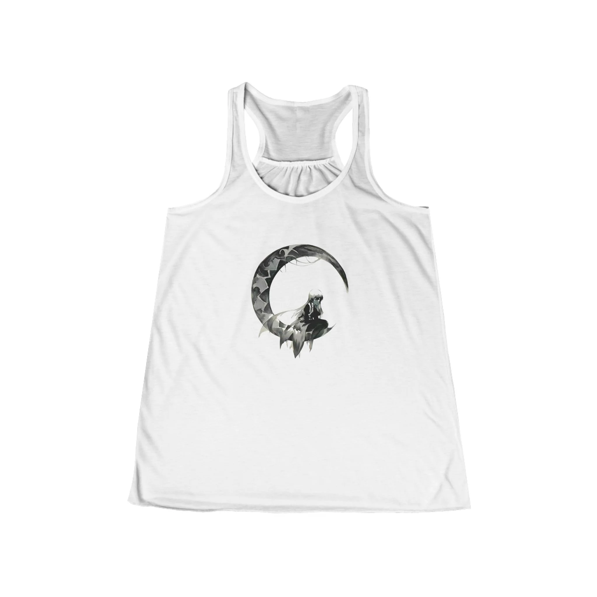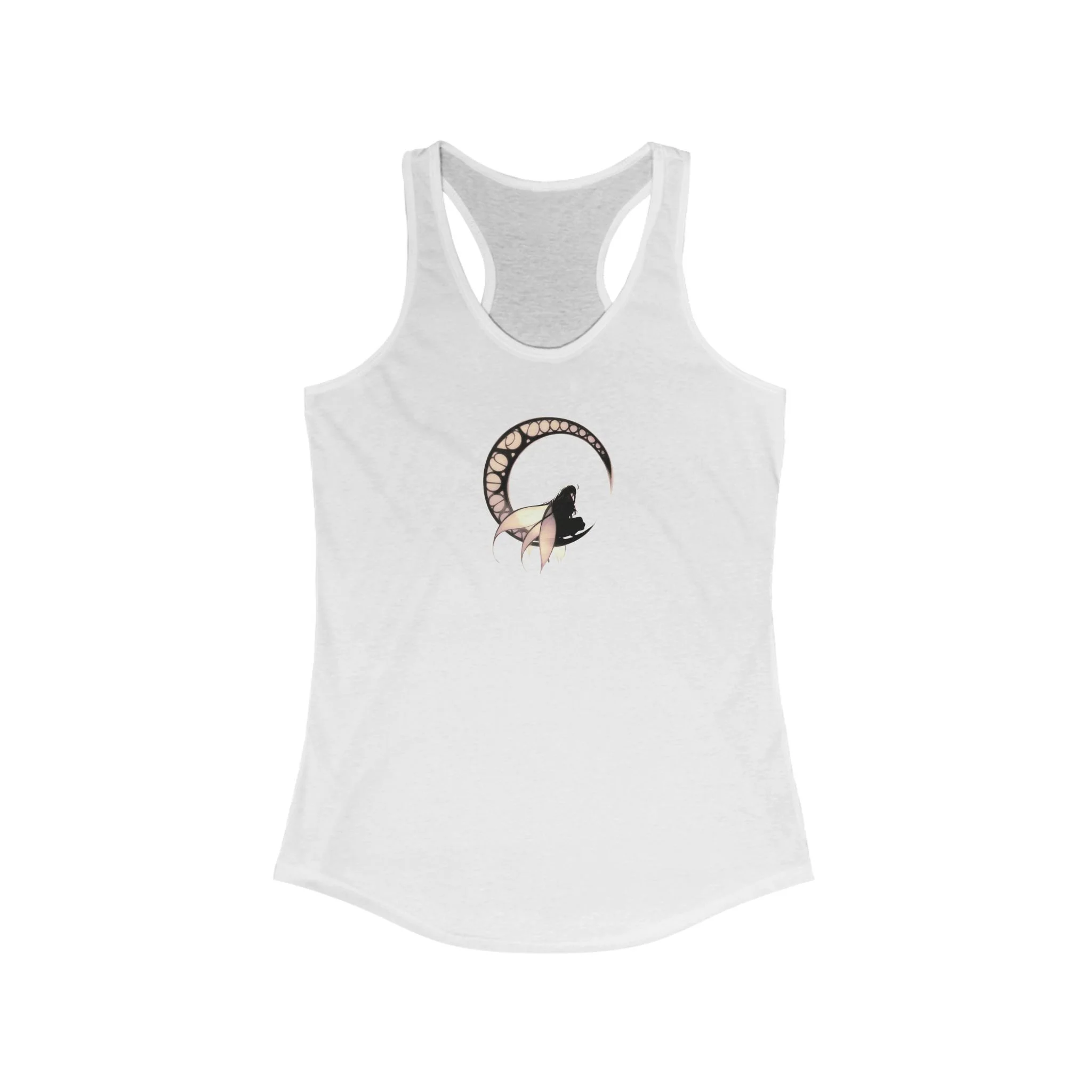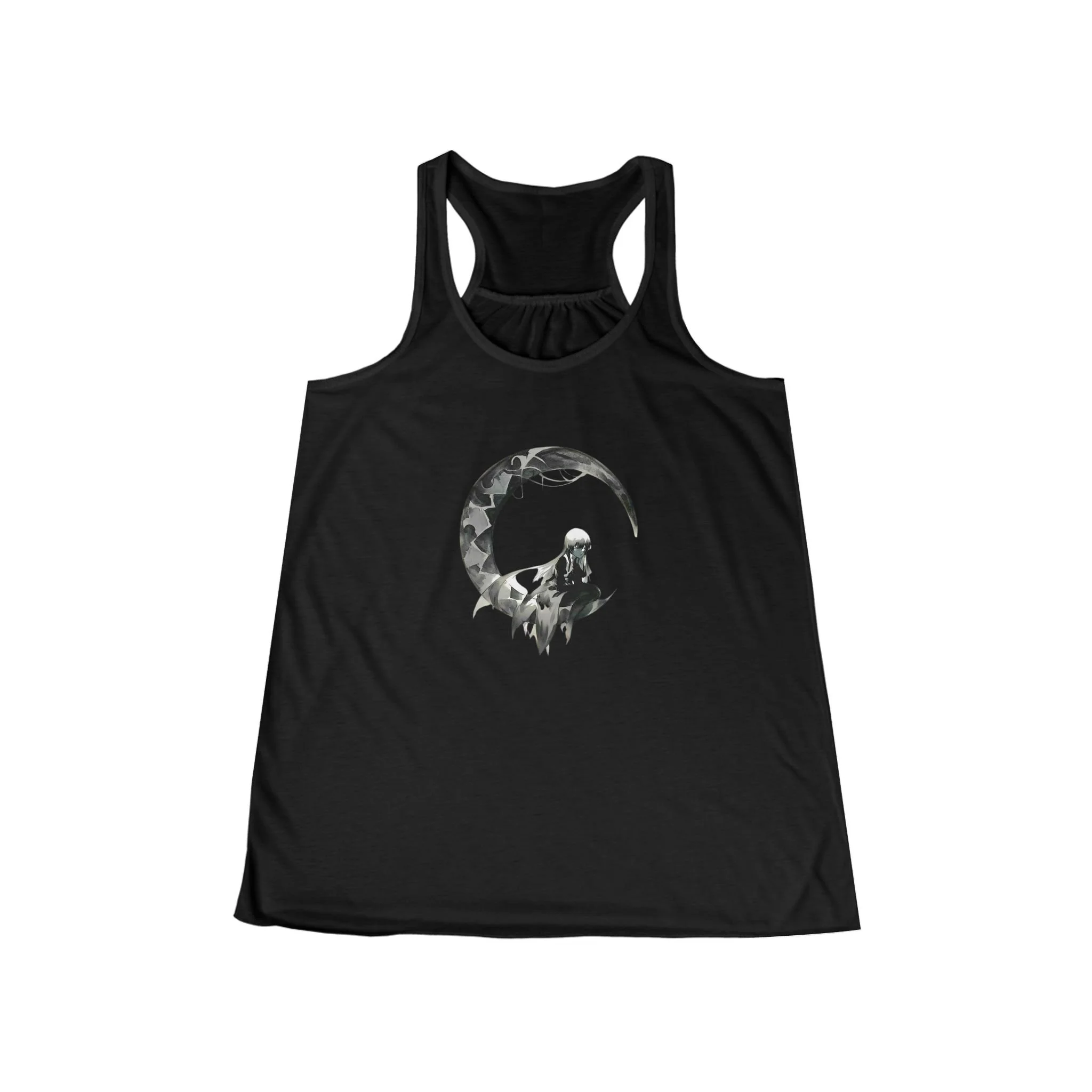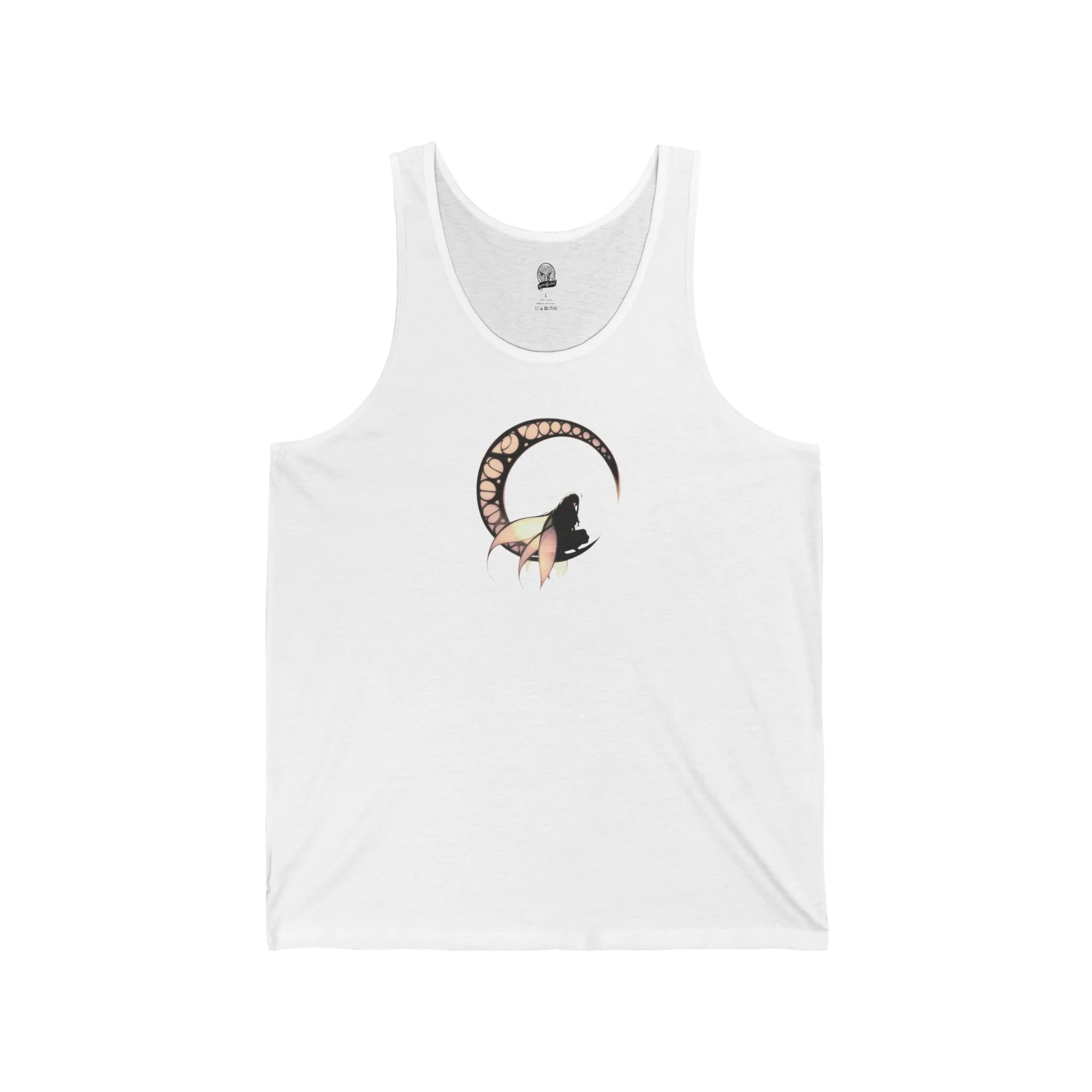 Featuring a bold, black-and-white dark fairy contimplating on a full moon, this tank offers a striking minimalist design that speaks volumes.