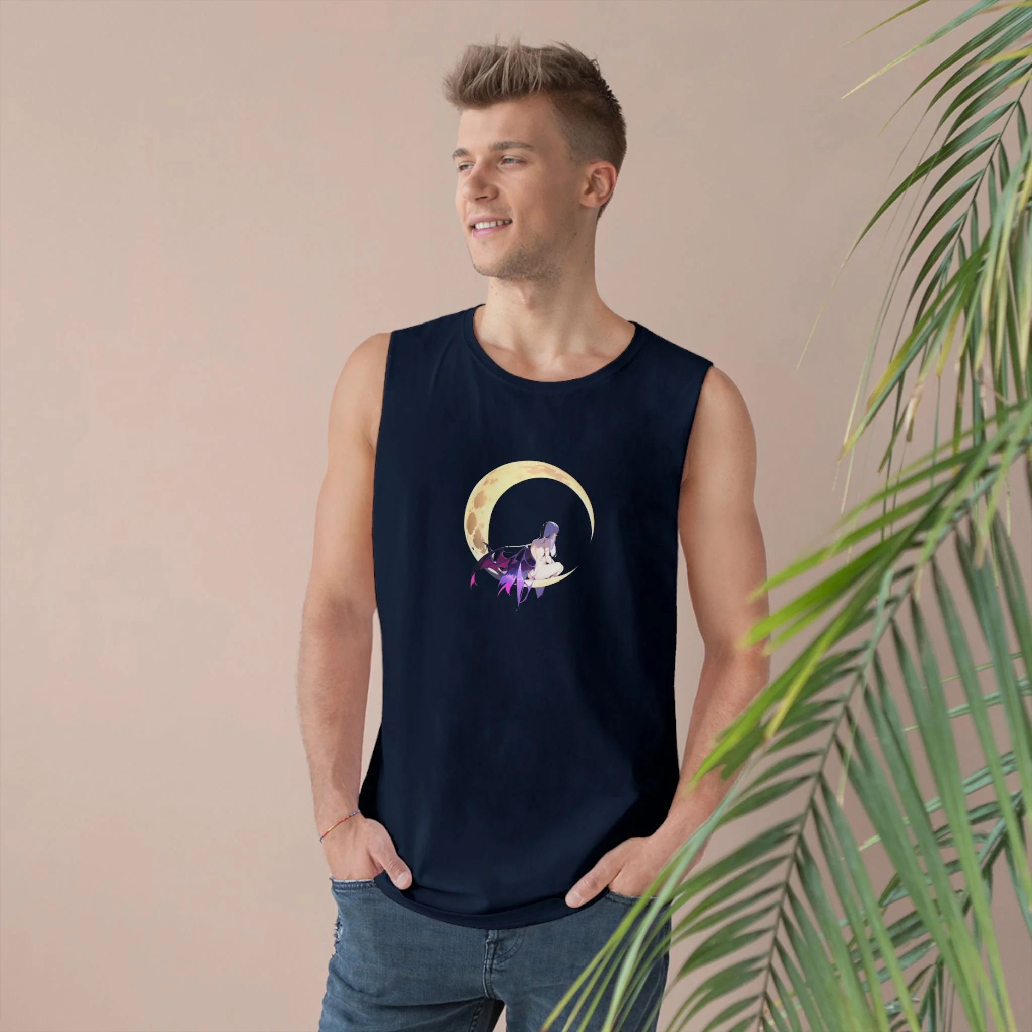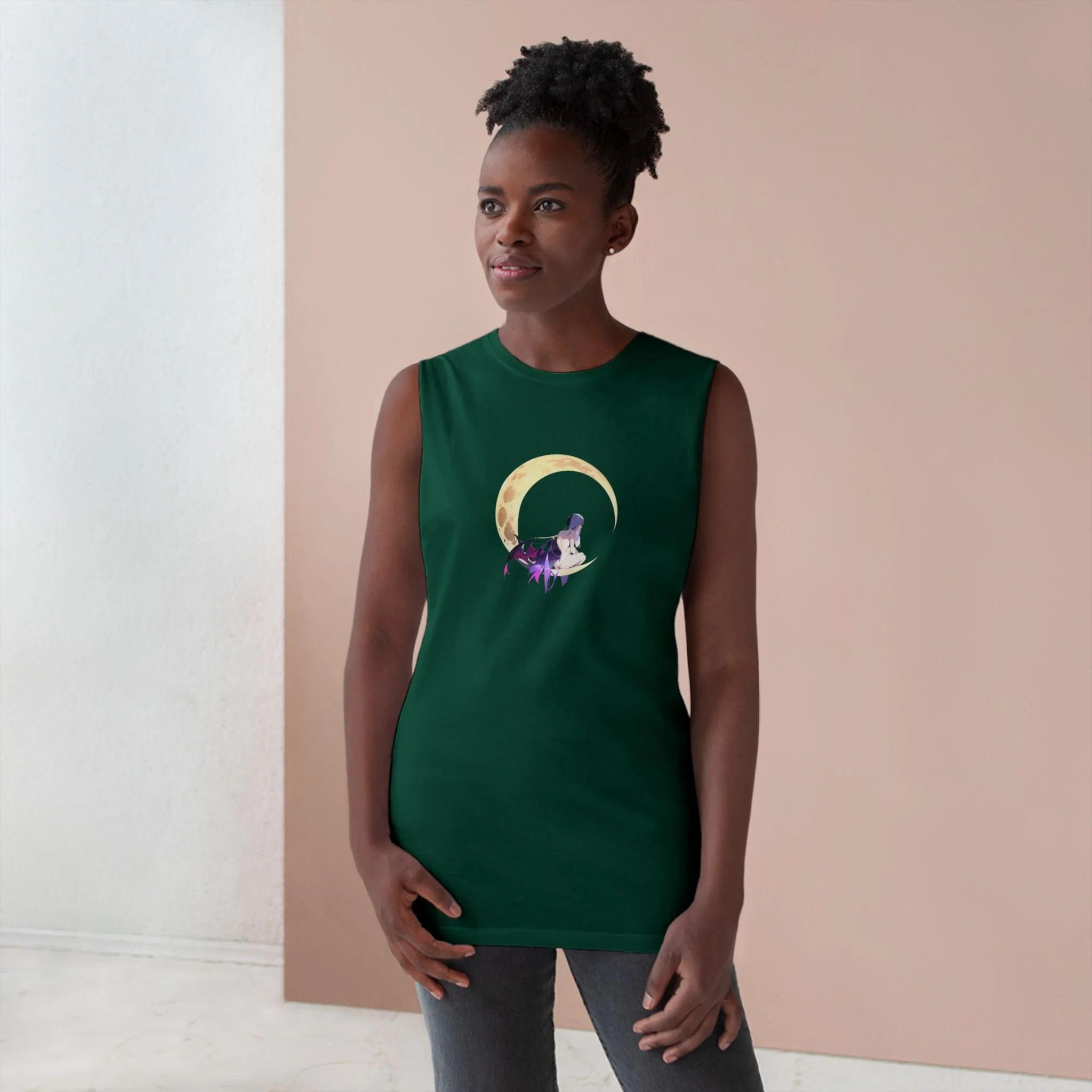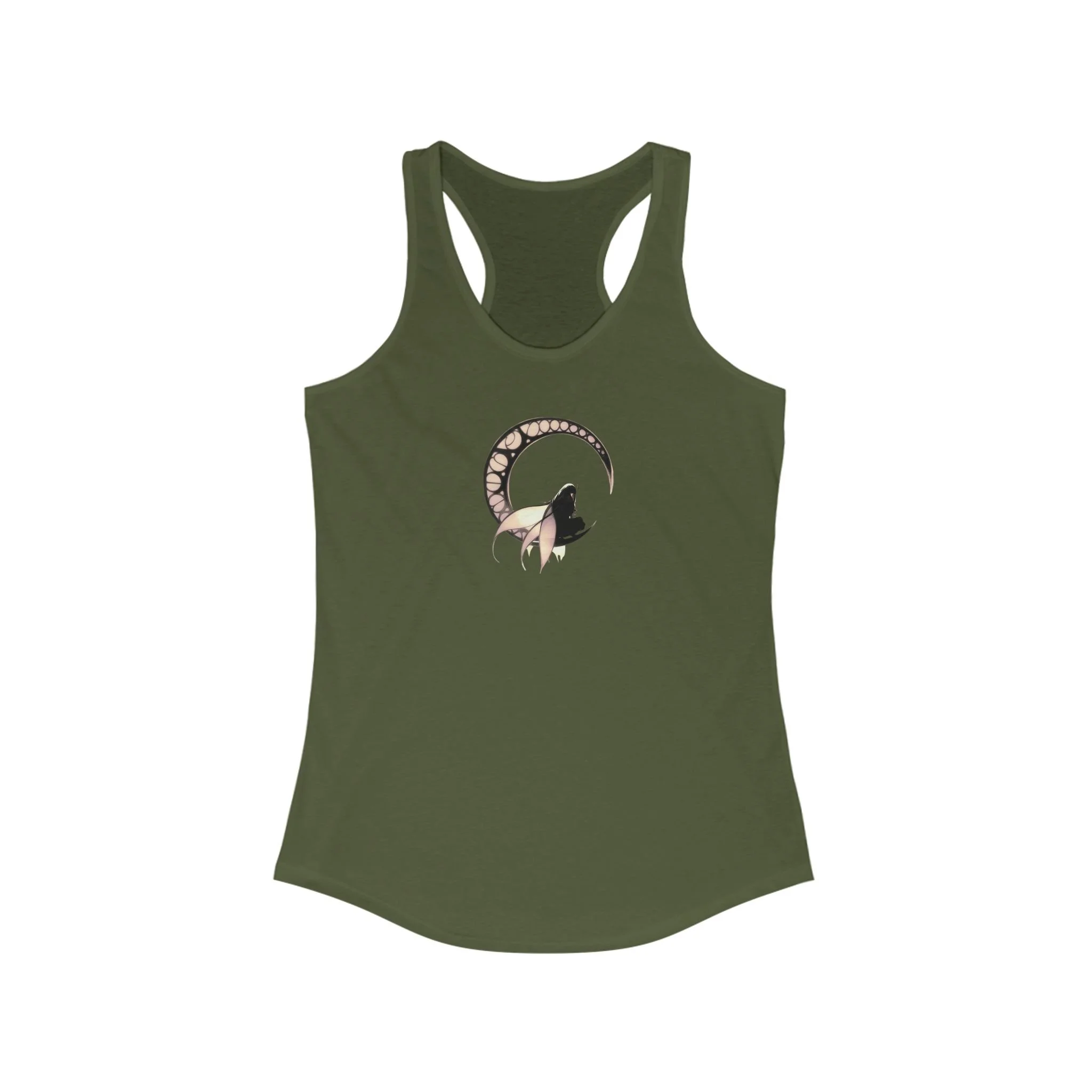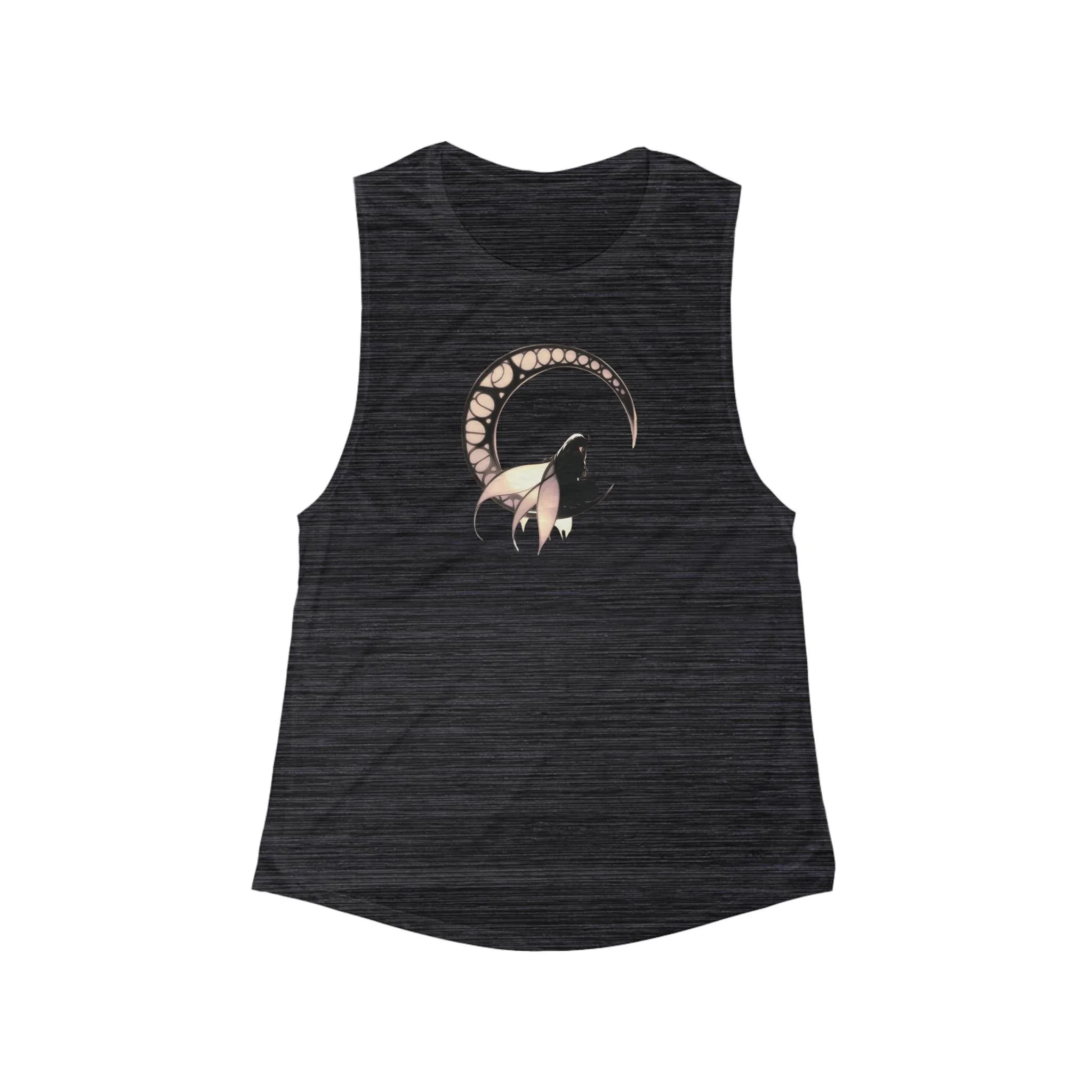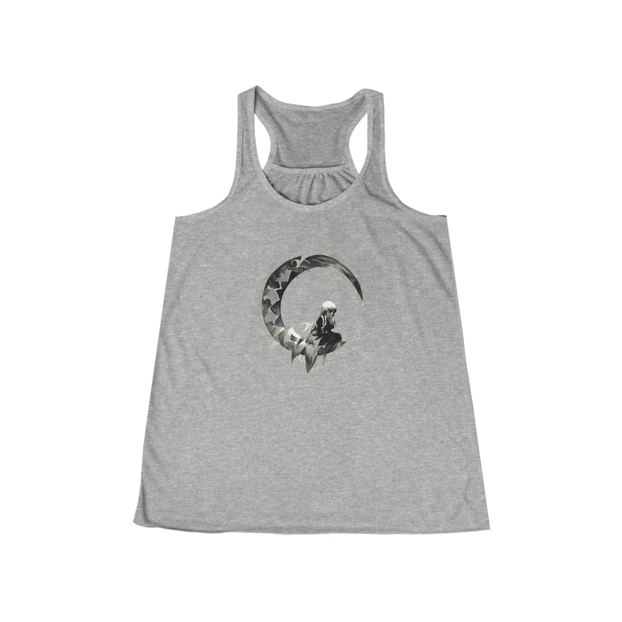 Featuring a bold, black-and-white dark fairy contimplating on a full moon, this tank offers a striking minimalist design that speaks volumes.