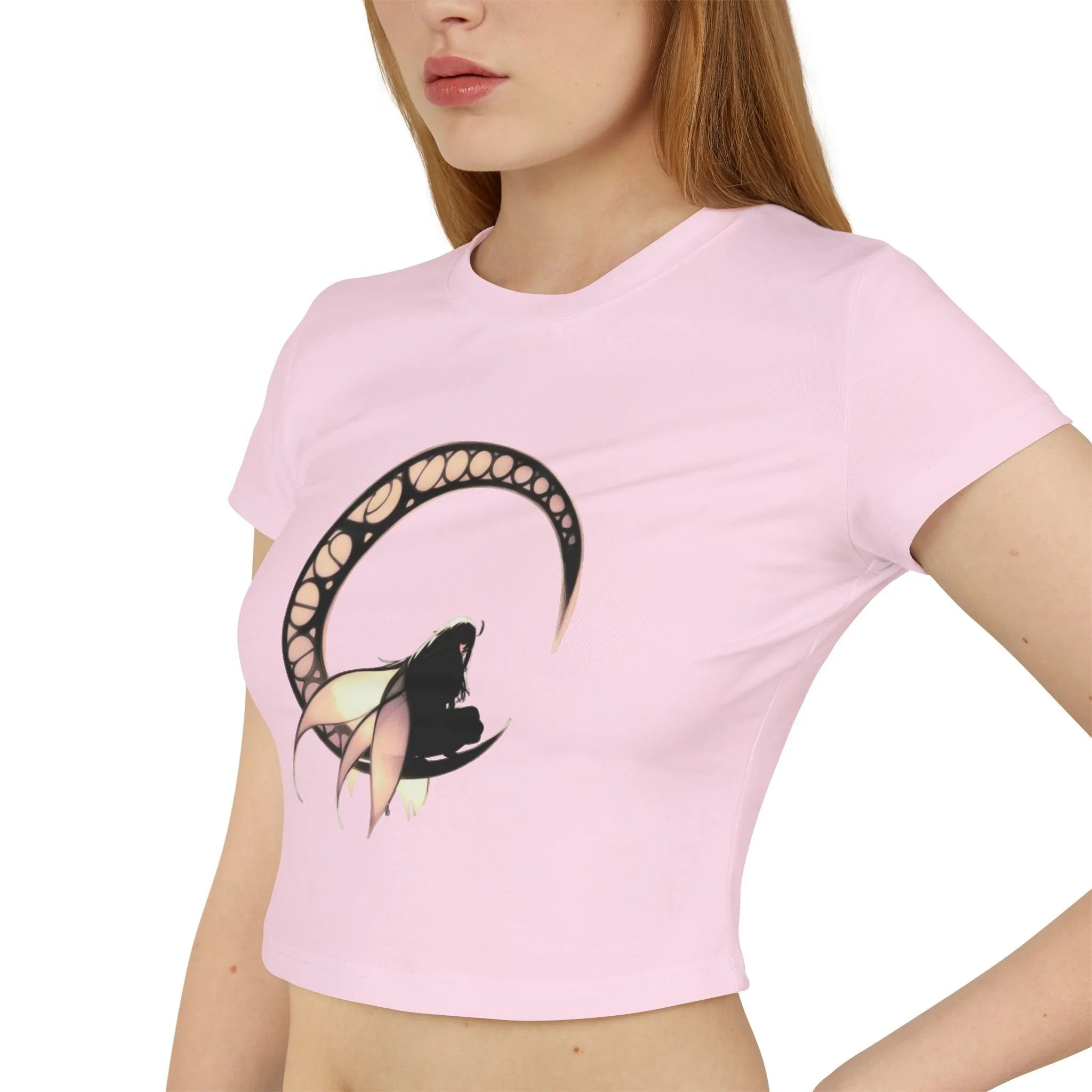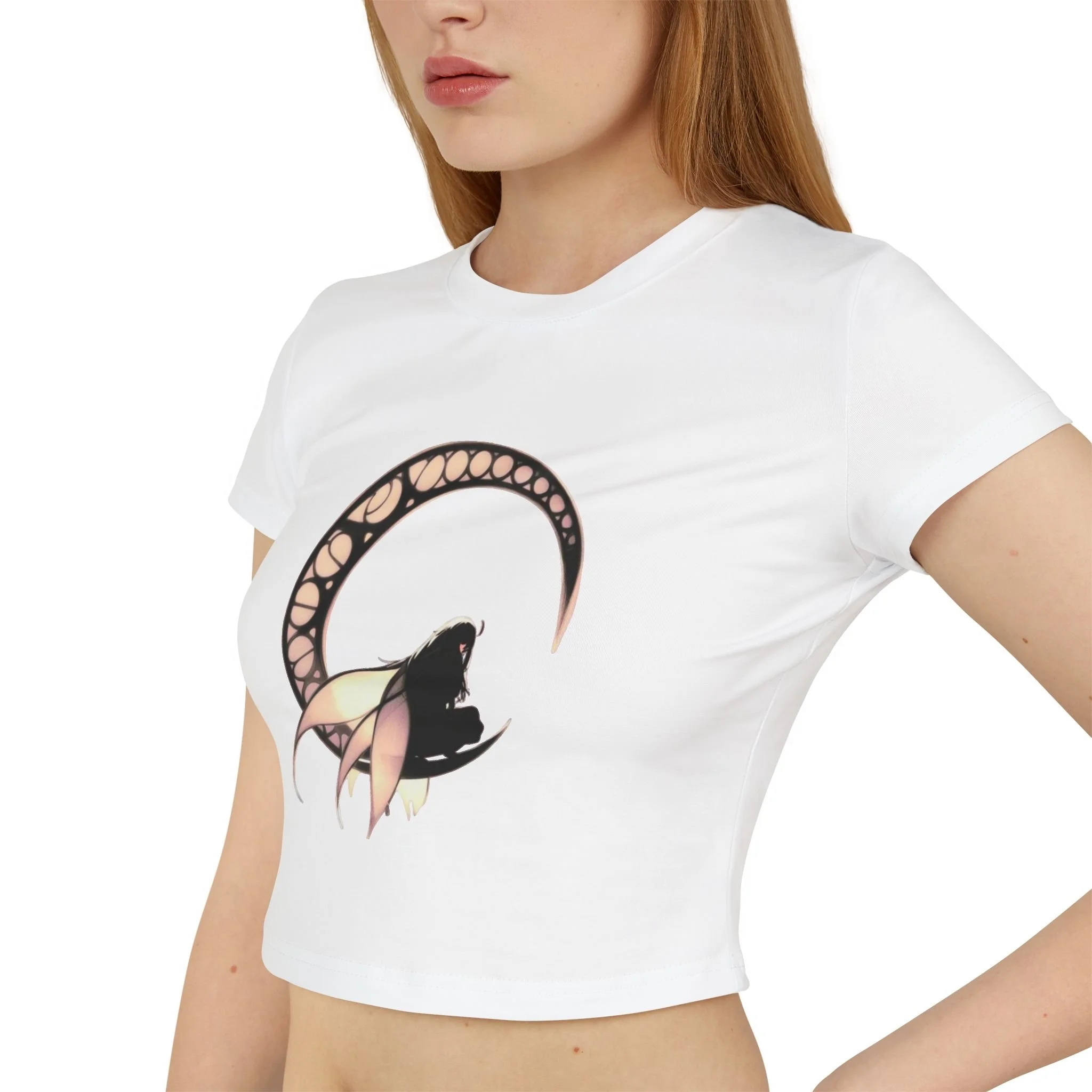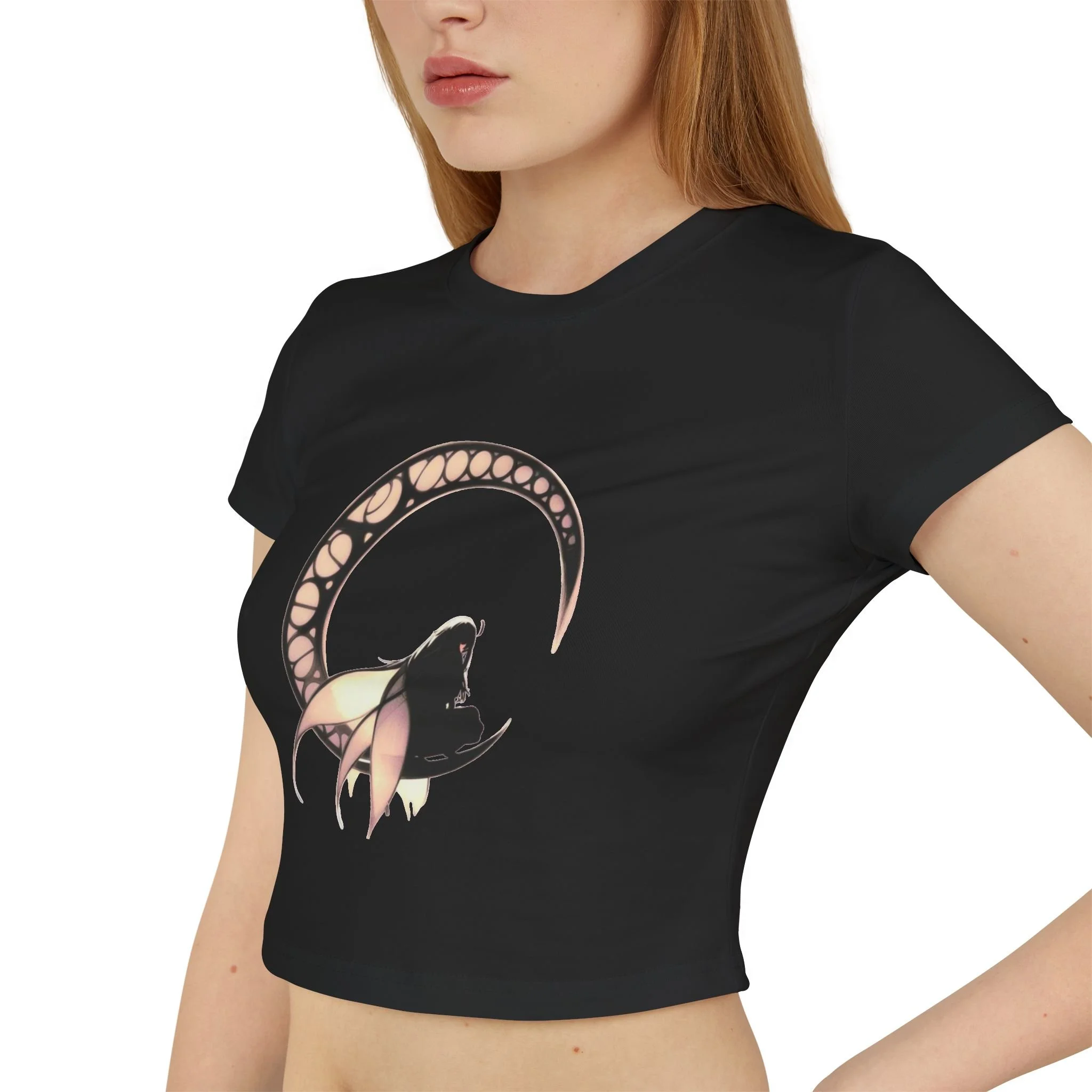 Embrace dark elegance with the Dark Fairy Moon 2 Women's Baby Tee, where gothic fantasy meets minimalist design.