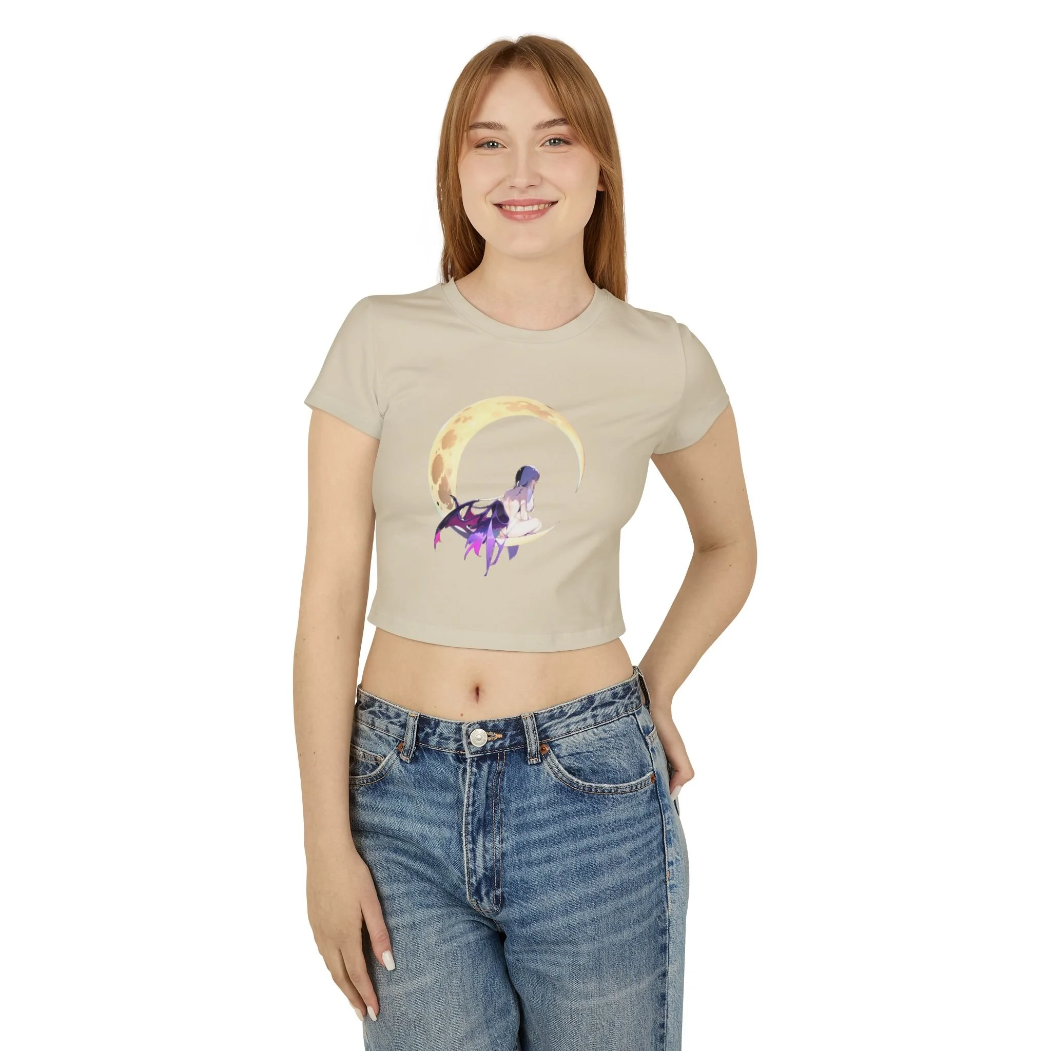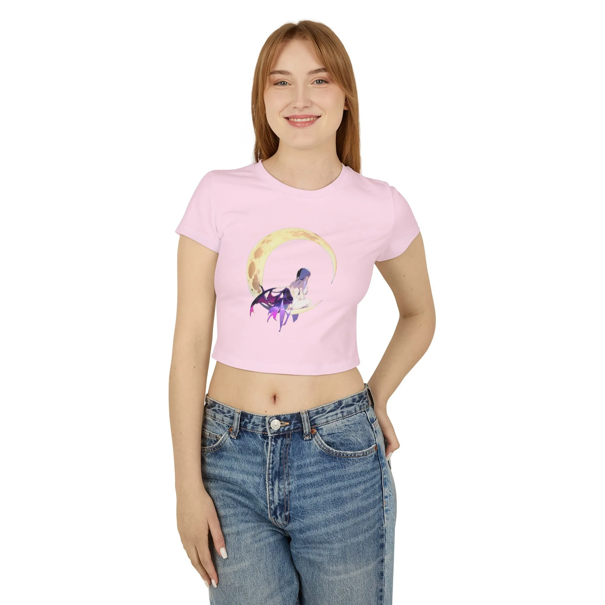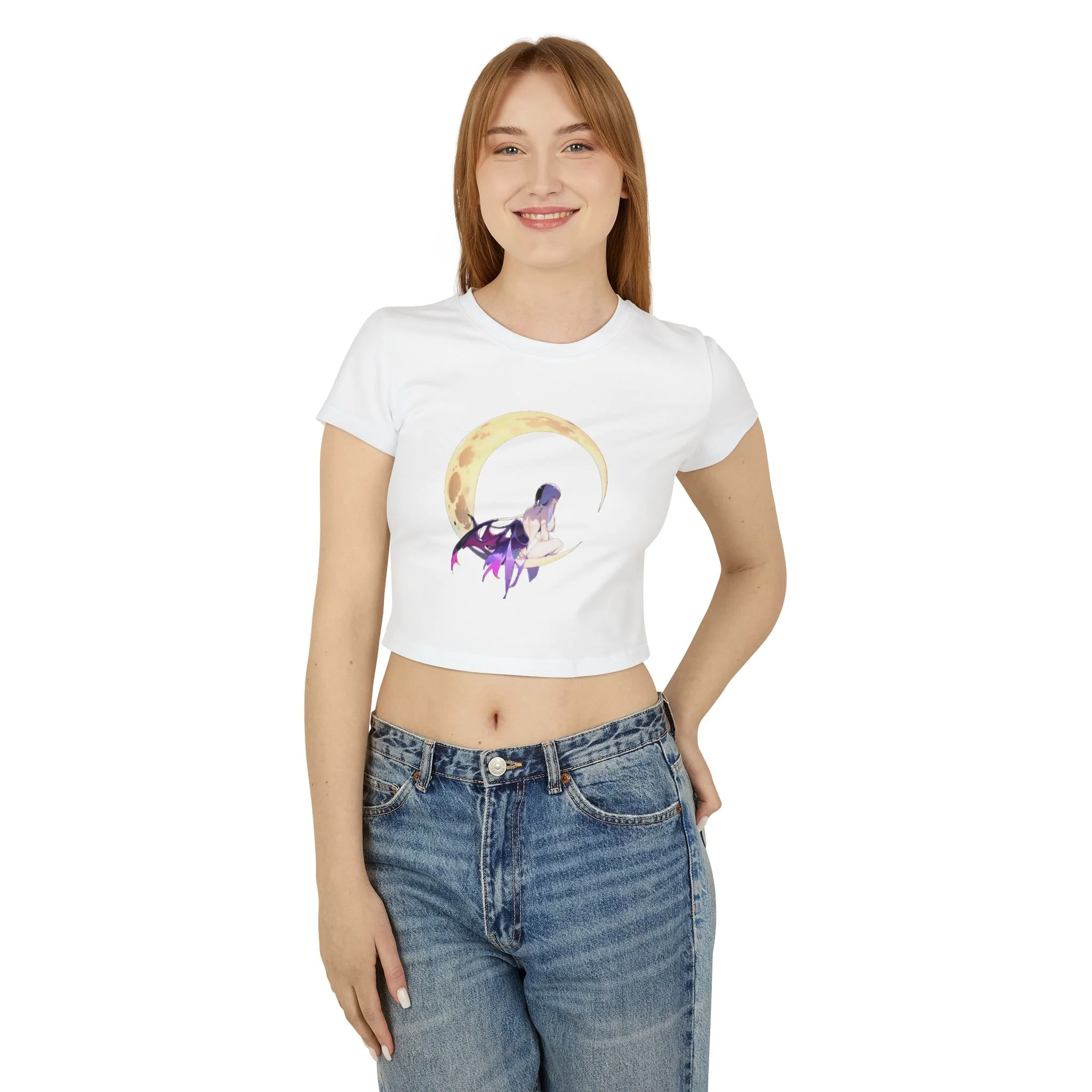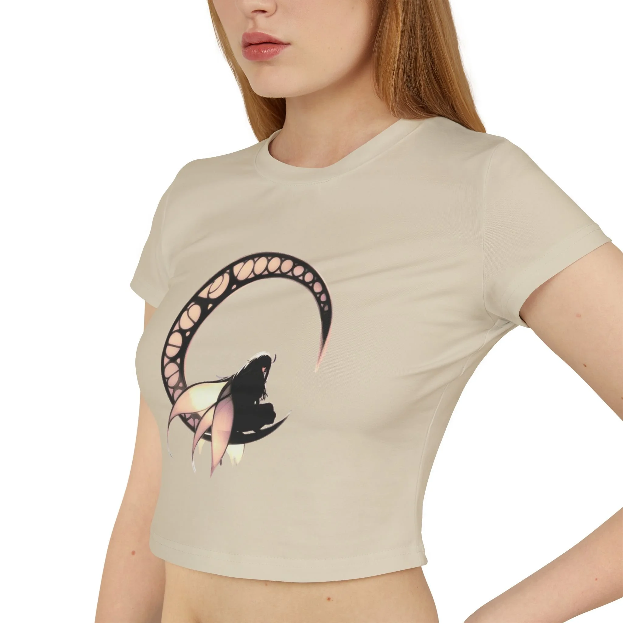 Embrace dark elegance with the Dark Fairy Moon 2 Women's Baby Tee, where gothic fantasy meets minimalist design.