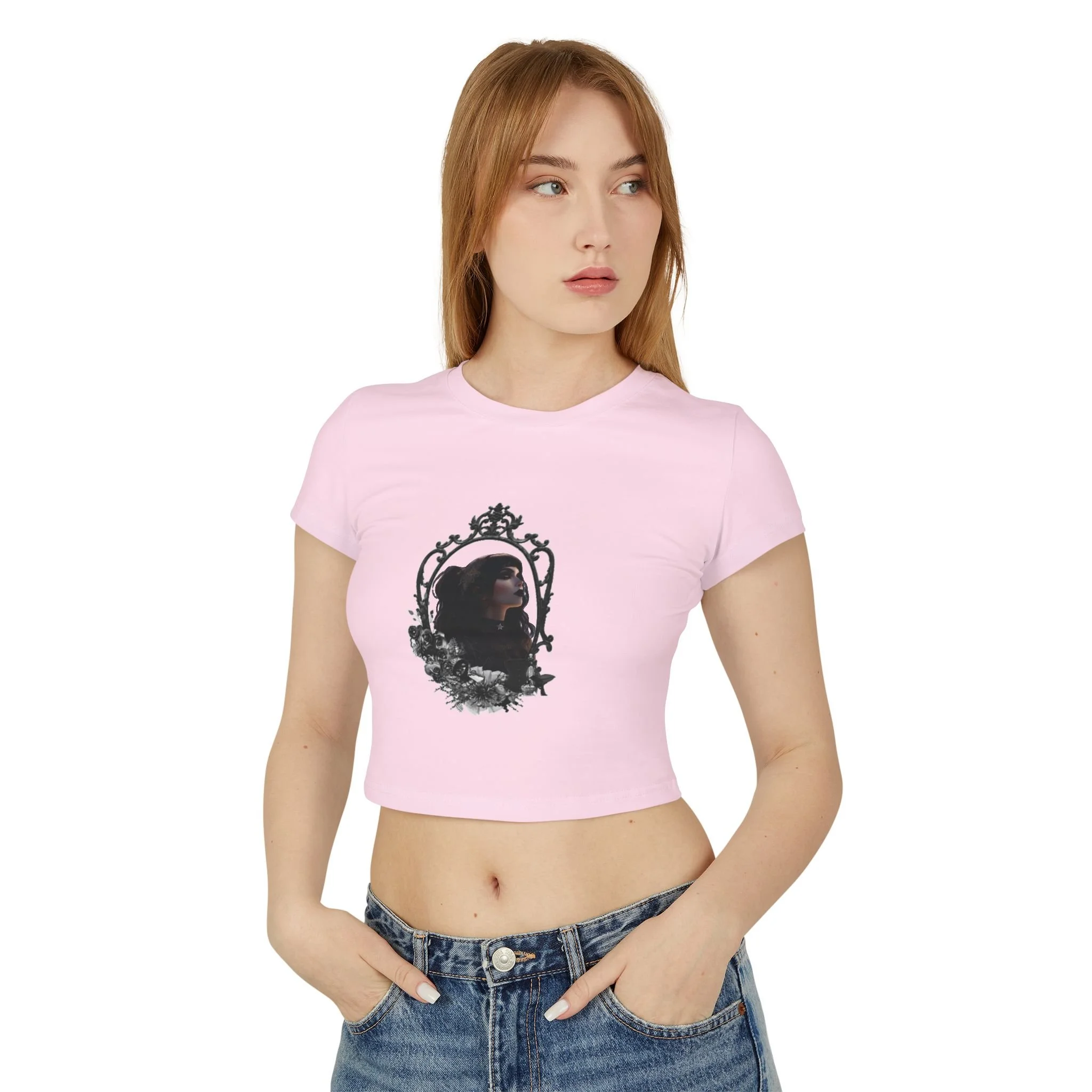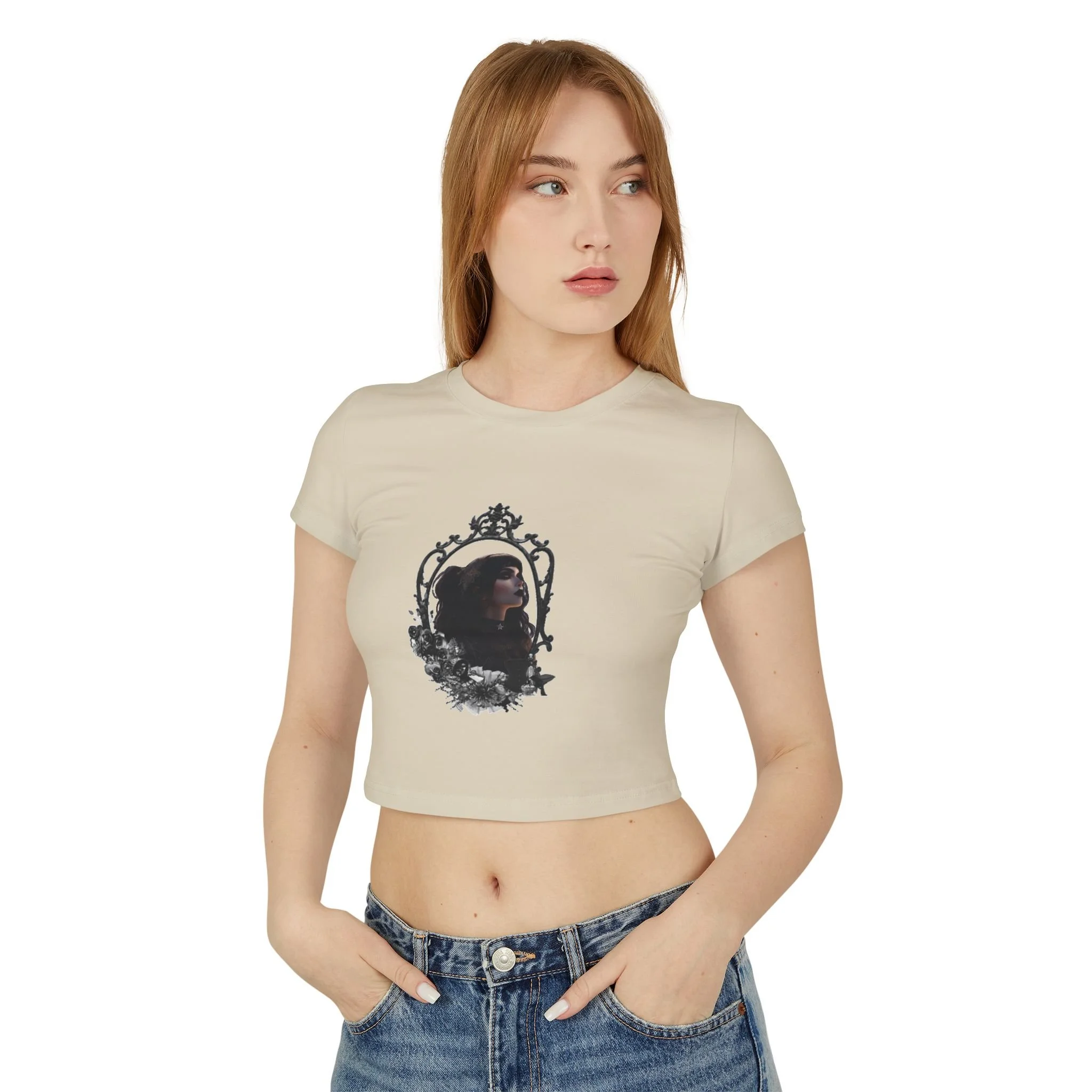 Step into timeless elegance with a modern twist in the Gabriella 3 Victorian Women's Baby Tee.