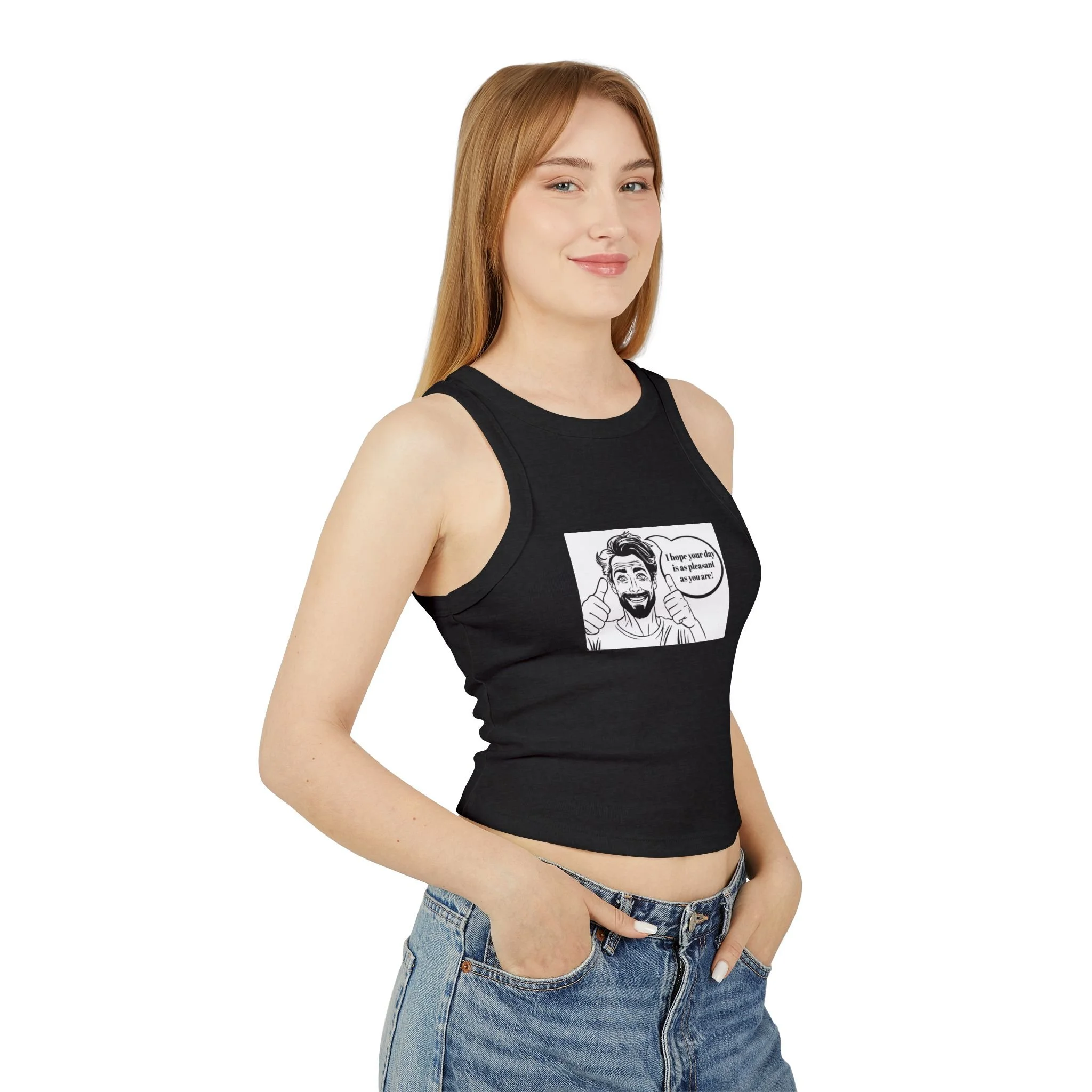 For those who prefer their compliments with a side of sarcasm — the "I Hope Your Day is as Pleasant as You Are" Women's Micro Rib Racer Tank Top says exactly what you're thinking. This cheeky, bold graphic tank brings together attitude and comfort in one must-have piece for your everyday rotation.