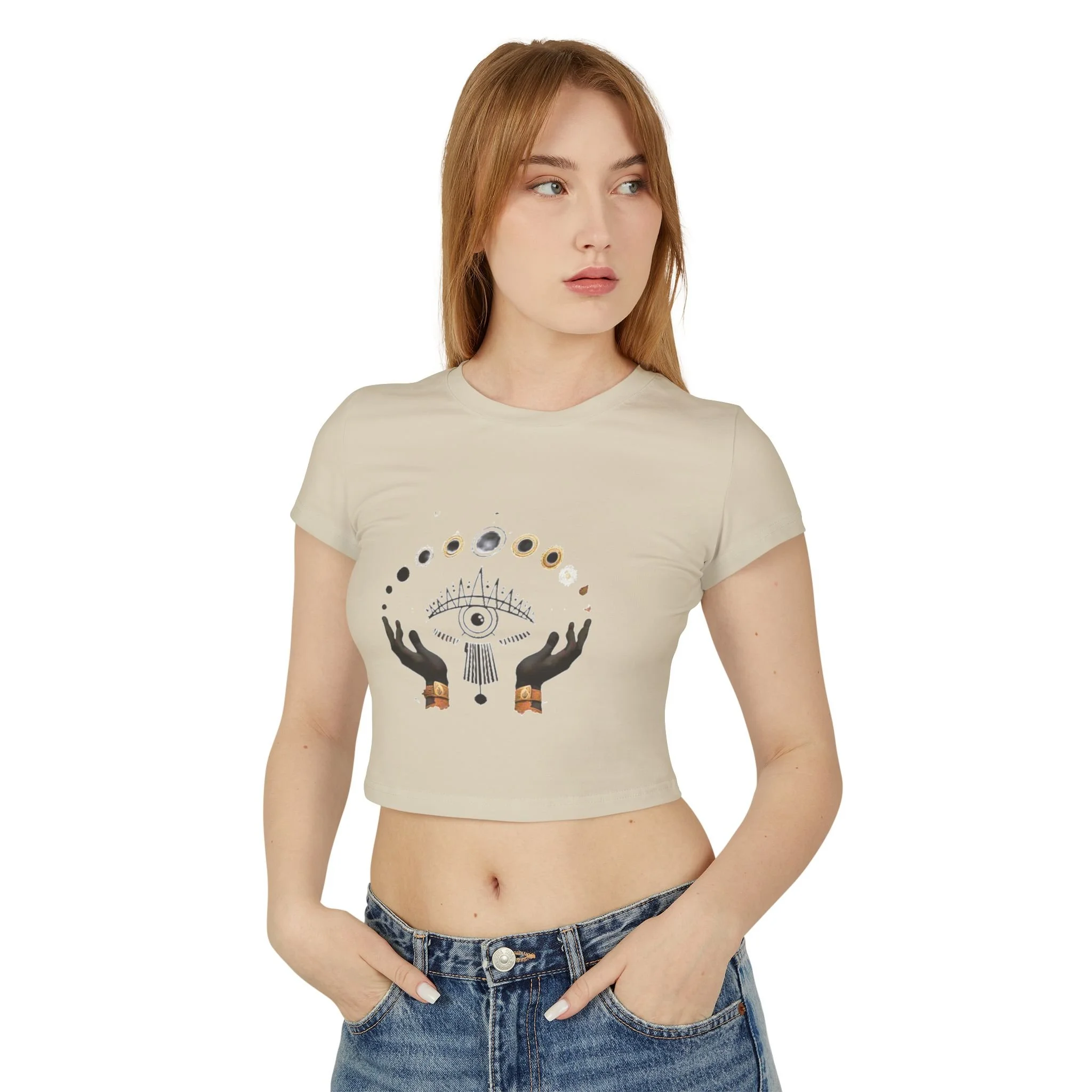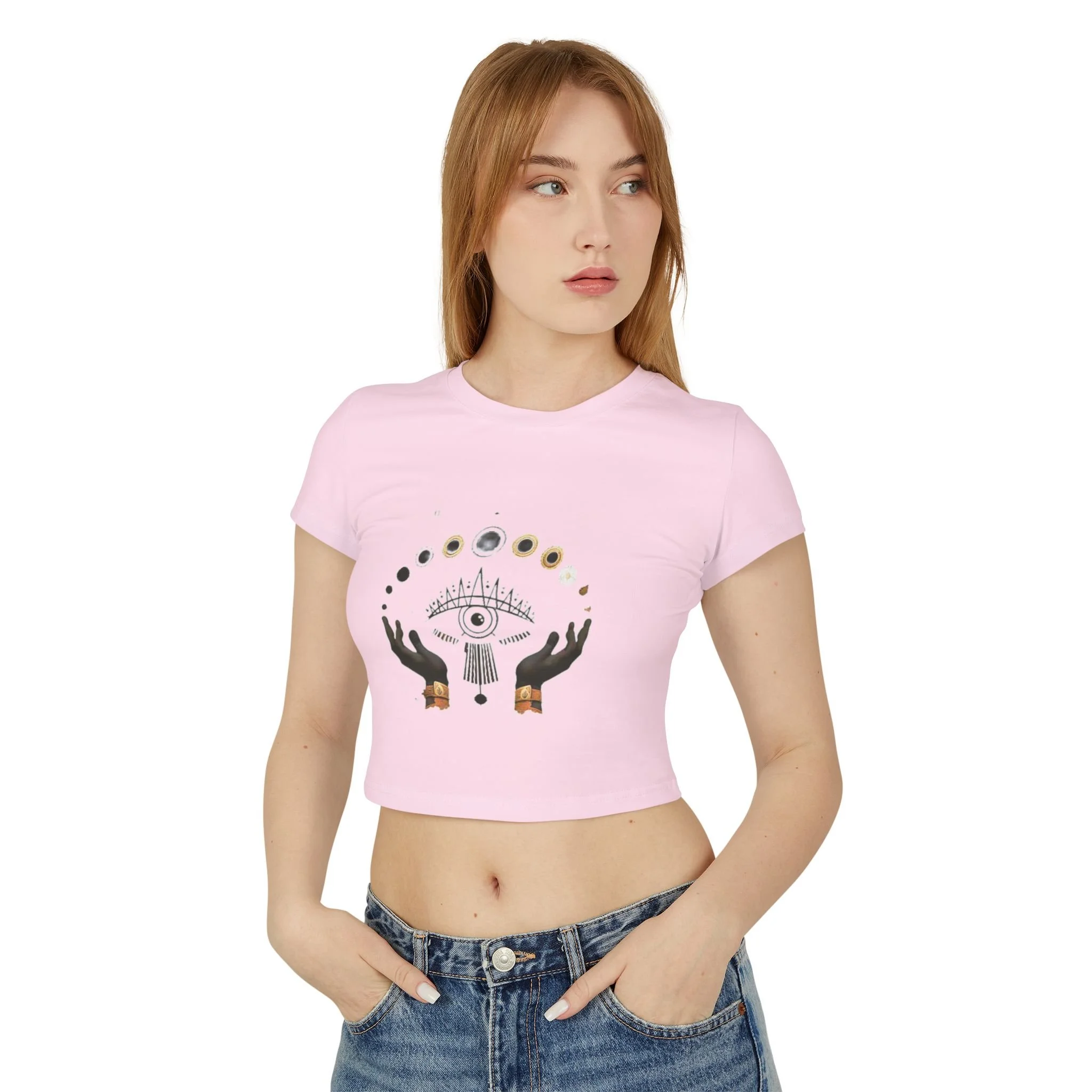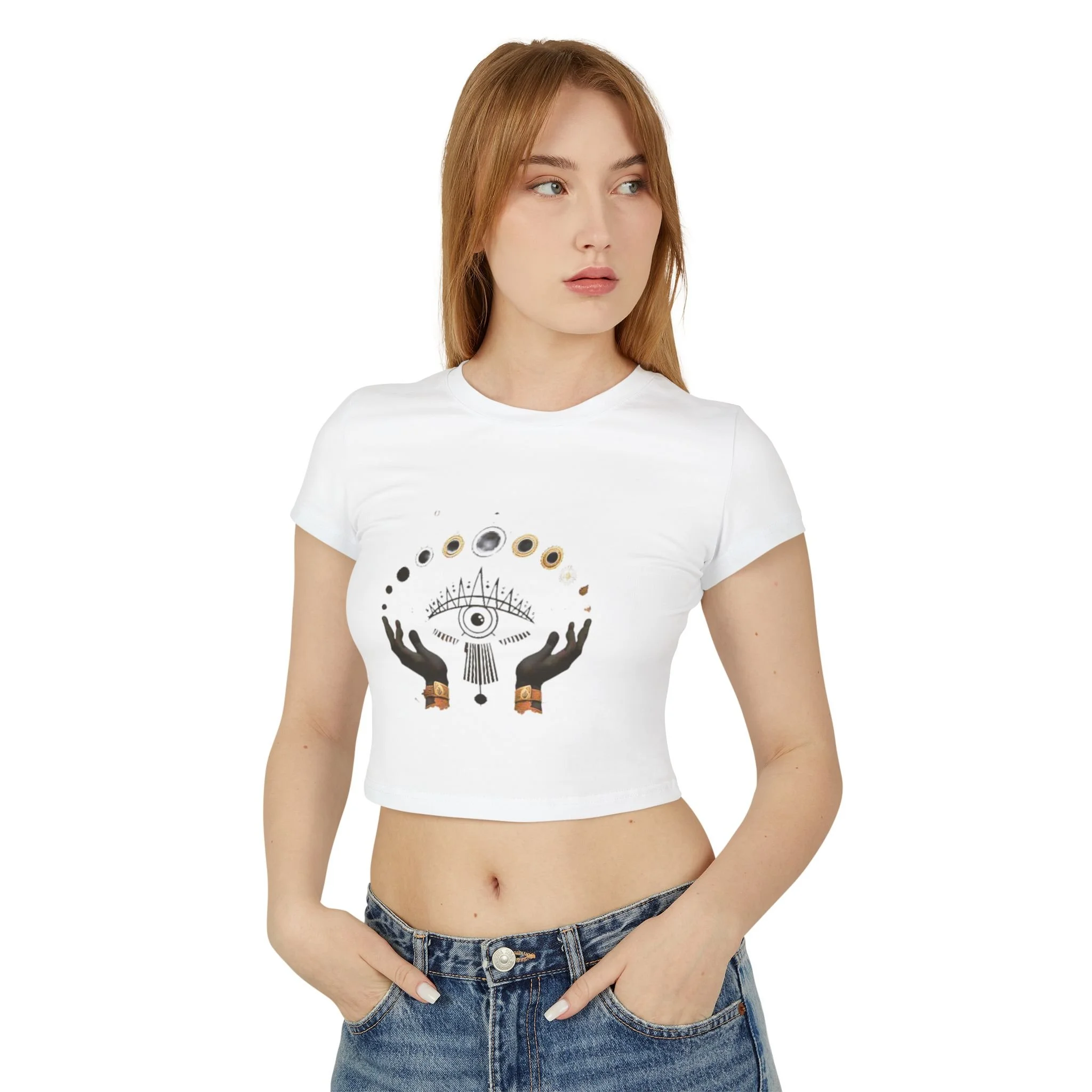 Ward off negativity and turn heads with The Evil Eye Women's Baby Tee — a bold, mystical crop top that merges protective energy with sleek, street-ready style. Featuring a striking evil eye graphic, this tee is more than just fashion — it’s a symbol of strength, intuition, and spiritual armor.